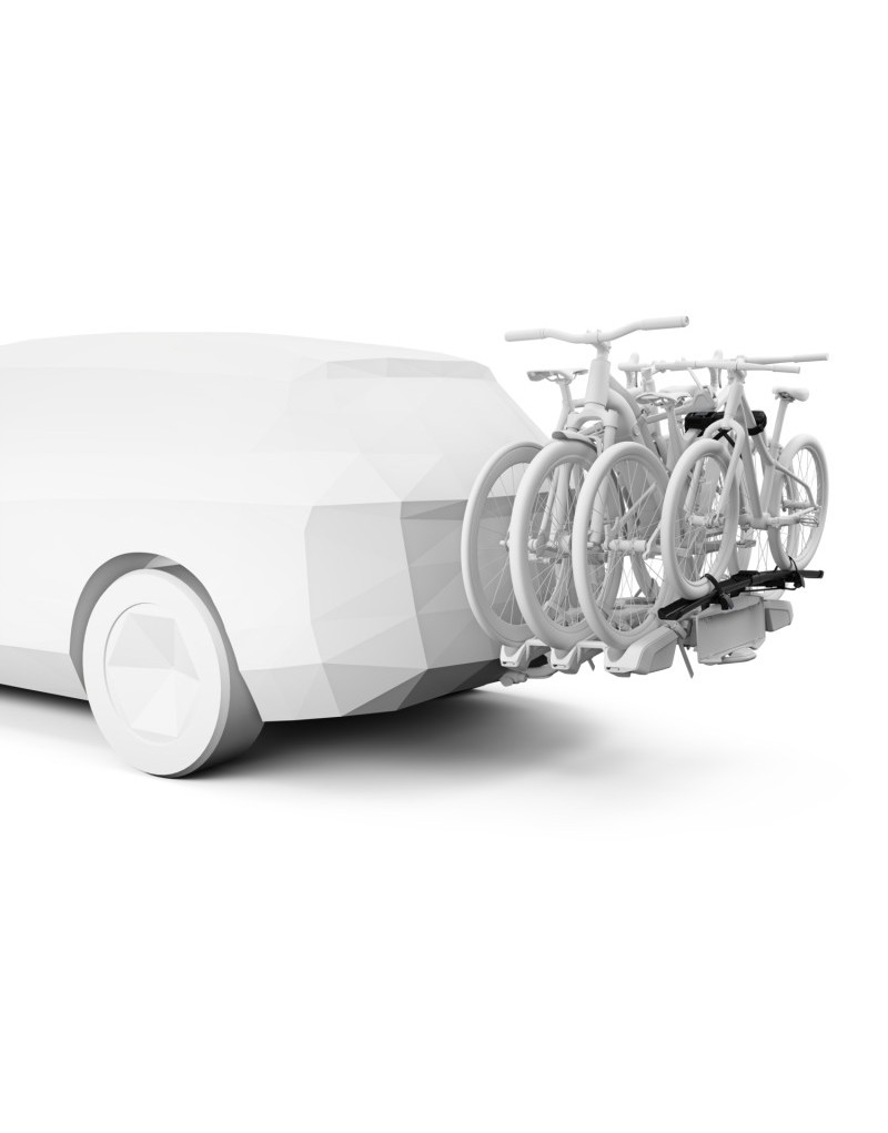Thule EasyFold 3 lze pomocí dalšího adaptéru pro kolo přeměnit z nosiče na 3 kola na nosič 4 kol, což je ideální volba pro rodiny. Velký rozvor kol umožňuje přepravu větších kol a elektrokol, takže můžete vzít s sebou kola pro celou rodinu nebo vaši cyklistickou skupinu.