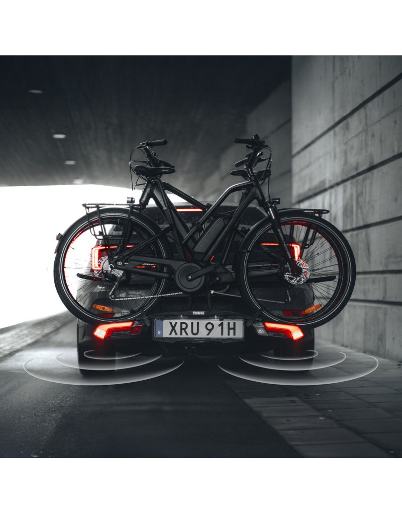 Thule Epos ParkSecure je vybaven integrovanými parkovacími senzory, které pomáhají chránit vaše kola při couvání.Jednotka ve vozidle poskytuje zvukové a vizuální upozornění uvnitř vašeho vozidla, čímž snižuje riziko nehod.Čtyřsenzorový systém pokrývá kola s rozvorem až 1350 mm a 29" koly a má široké zorné pole pro ochranu nosiče i kol.