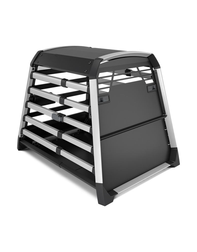 Přepravní klec pro psy je k dispozici v pěti až deseti různých velikostech (v závislosti na trhu). Všechny přepravní klece mají oblé hrany, aby dokonale seděly jak do vašeho auta, tak i pro vašeho psa. Navíc lze hloubku přepravní klece nastavit pro perfektní přizpůsobení vašemu kufru, a napínací pásy zajistí, že zůstane pevně připevněna během jízdy. Je skvěle navržená a dobře vyrobená – tato prémiová přepravní klec pro psy nebude vydávat žádný hluk ani rachocení.