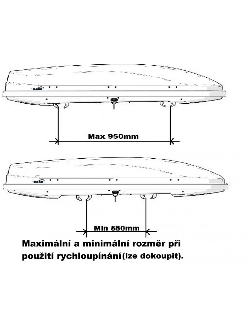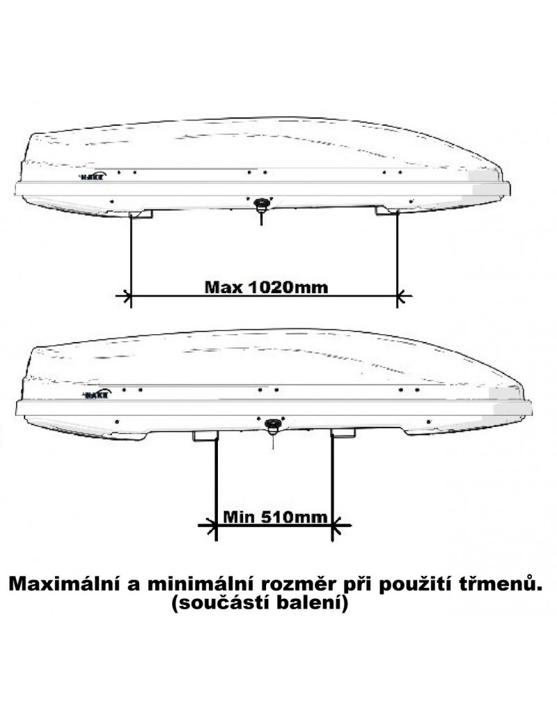 k upevnění boxu k nosiči slouží U-třmeny o šířce 8,2 cm - max vnější upnutí 1020 mm a min vnitřní upnutí 510 mm